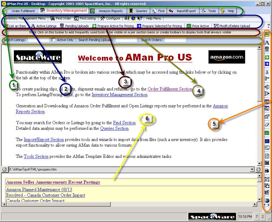 The sixth section display Amazon announcements. This is useful to browse in case you are having difficulties receiving orders or listing/pricing items.