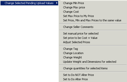 Often times, you will need to change values in your Active Listings or Pending Uploads in bulk. For instance, you may want to change the minimum prices on a batch of items. AMan Pro provides a facility for doing this from your Active Listings or Pending Uploads.
