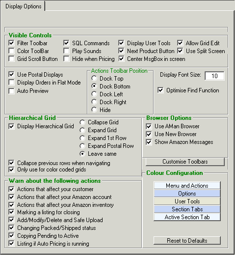 Use Postal Displays- If you are using Internet Postage with AMan Pro, this must be turned on. The order display will then show an extra line with the postage information for each item.