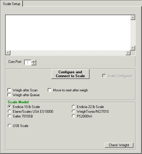 Weigh after Queue - If checked, AMan will weigh the item on the scale when an item is queued to Pending Uploads from the List an Item screen. This option allows you to place an item on the scale, scan the barcode and have the weight from the scale automatically entered when queued. If you use this option, you should turn off the option to obtain weights from the Amazon catalog when listing. To turn this off see Configuring Listing Options .