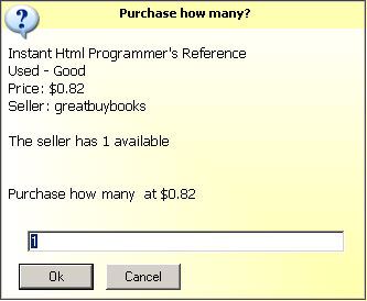 will cause AMan to prompt you for the quantity you wish to purchase (and the quantity the seller has available if provided by Amazon). It will then display your Amazon shopping cart where you can purchase the items.