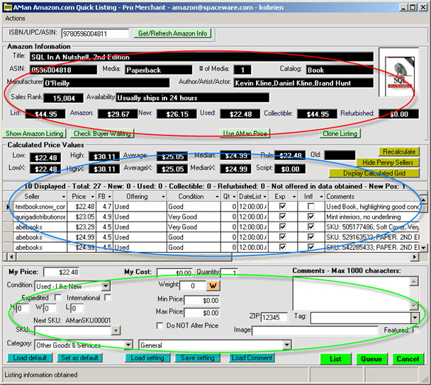 Defaults may be set for the List an Item screen which are then used to populate the various fields once the screen is first displayed. Other defaults may be saved and recalled when you wish to change the item settings.