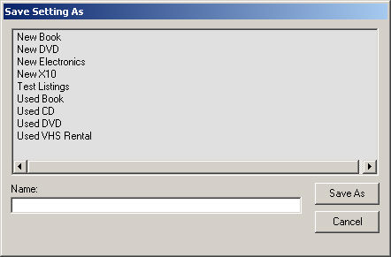 You may select an existing setting and overwrite it or specify the name for the setting in the area provided.